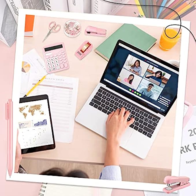 Value Pack: you can get 1 stapler, 1 desktop tape dispenser, 1 ballpoint pen, 1 box of binder clips and paper clips, 1 scissor and 1 calculator, such a complete office supplies combination is enough to meet your study or office needs