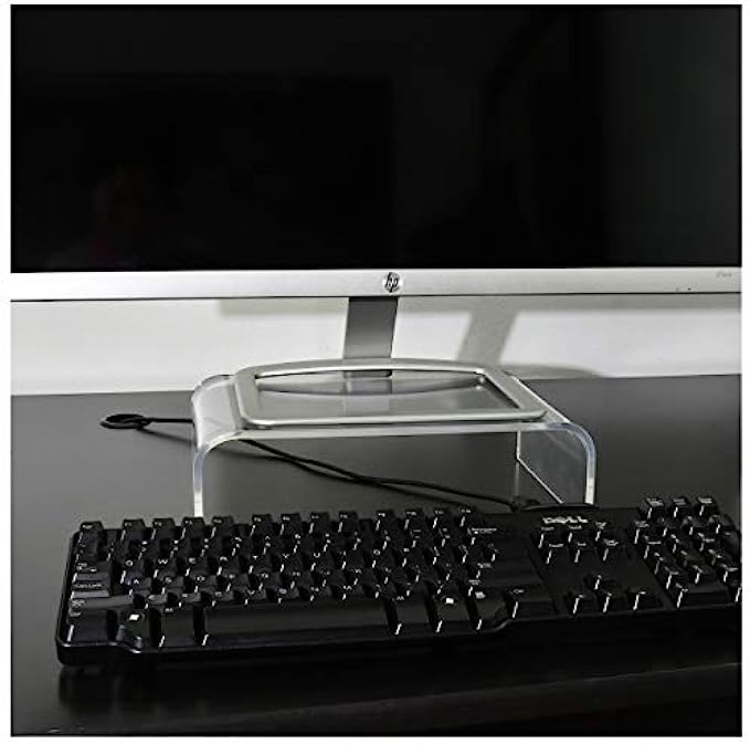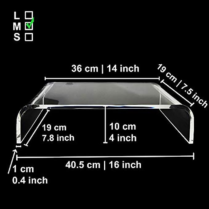 ⭐ MODERN: AMT Acrylic Monitor Stand is construction with smooth edges and a beautiful clear transparent platform, perfect size for any desk. These stands are just the right height and work with any decor. This Acrylic Monitor Stand also wide enough for the keyboard to fit under and makes for quick dusting.