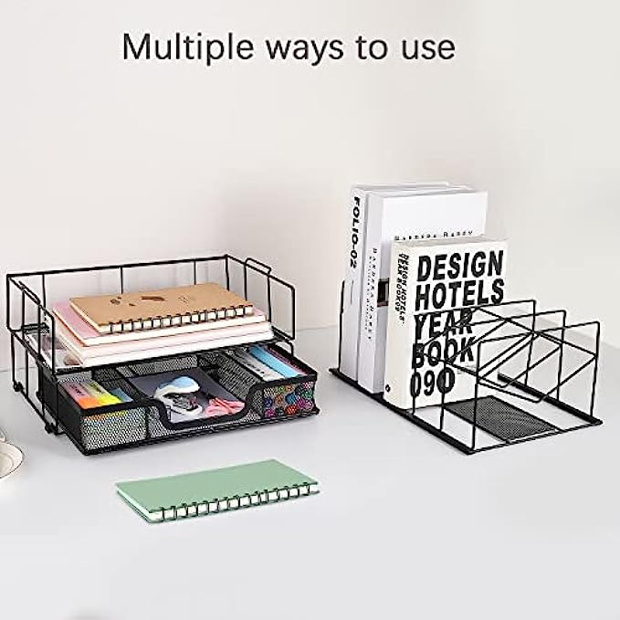 ?【EASY ACCESS】: The office organizer has 2 Letter Tray + 5 Magazine Racks + 1 Sliding Drawer, which makes full use of your vertical and horizontal space, helps you quickly identify the contents of each compartment, and greatly improves your work efficiency.