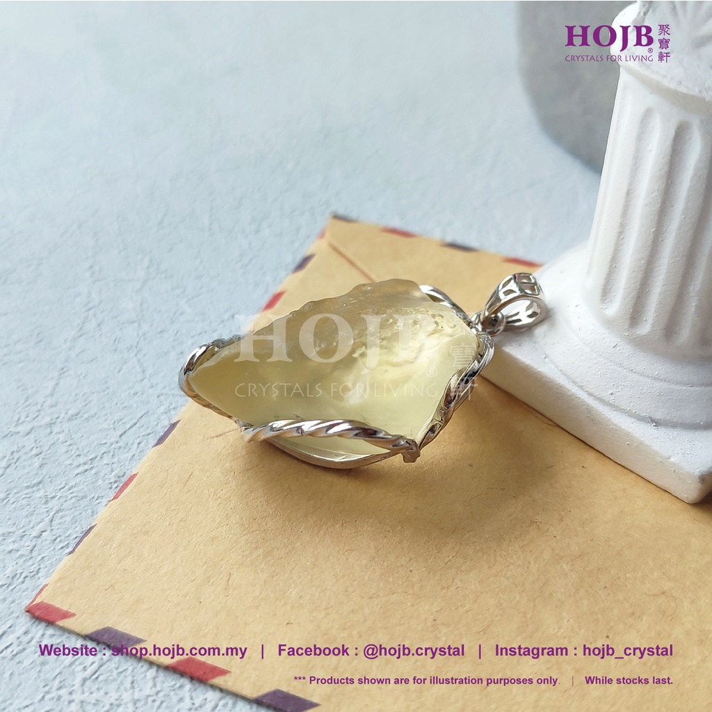 HOJB Authentic Libyan Desert Tektite Rough Stone S925 Pendant 25x32mm (17.1G) Jubaoxuan Pure Meteorite (Gold Meteorite) S925 Silver 25x32mm (17.1G)