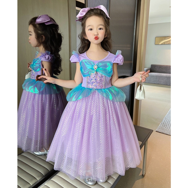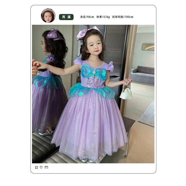 In stock~ ins girl mermaid princess dress 2023 summer new short-sleeved dress birthday dress for girls