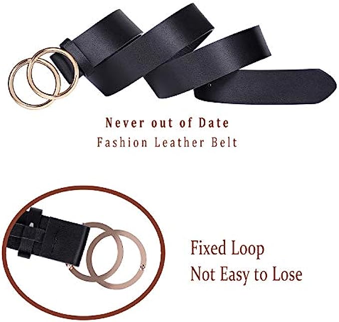 JASGOOD 3 Pack Women Leather Belt for Jeans Pants, Ladies Waist Belts with Double O-Ring Buckle