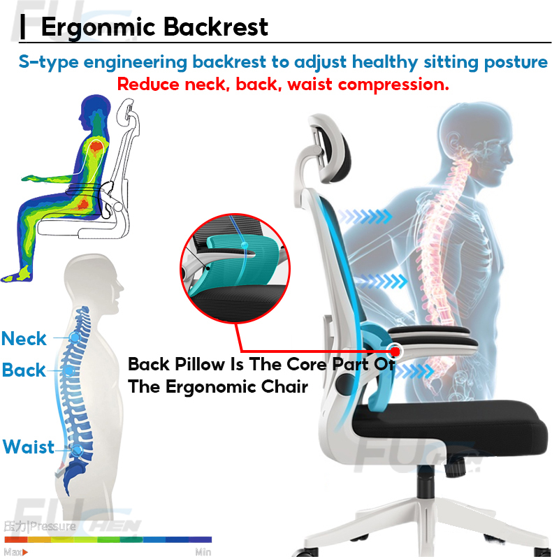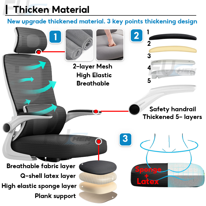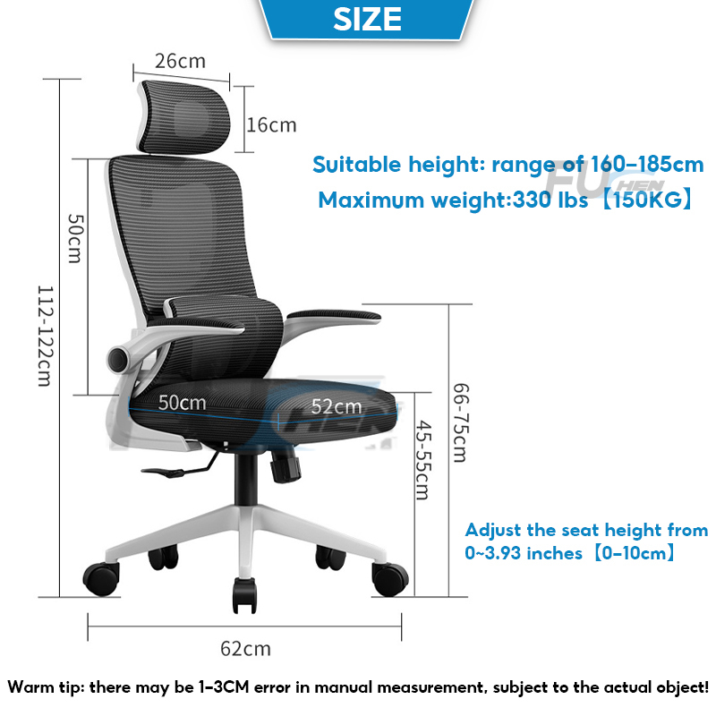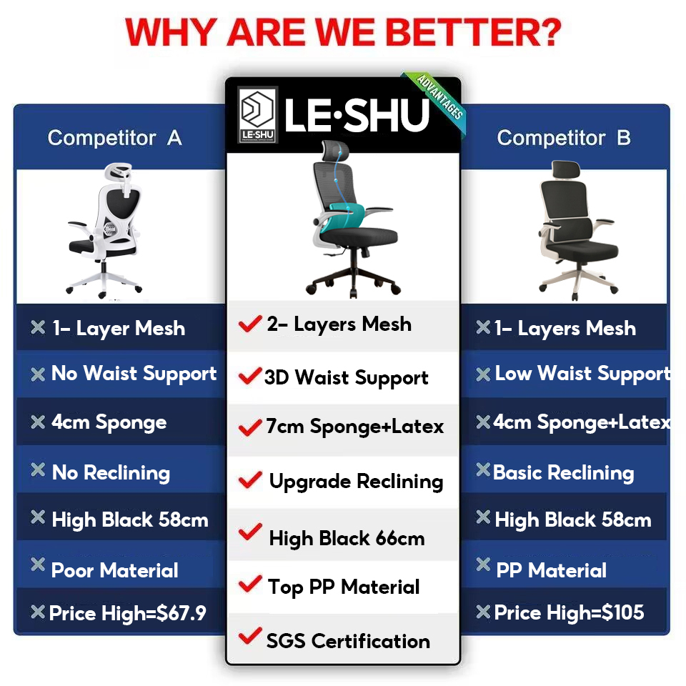 LeShu Office Chair Ergonomic Mesh Office Chair Comfort For Work 8 Hours High-back Adjustable 3D Headrest Reclining 90-125°