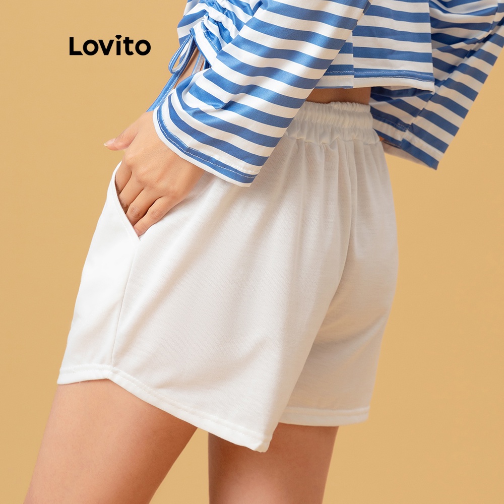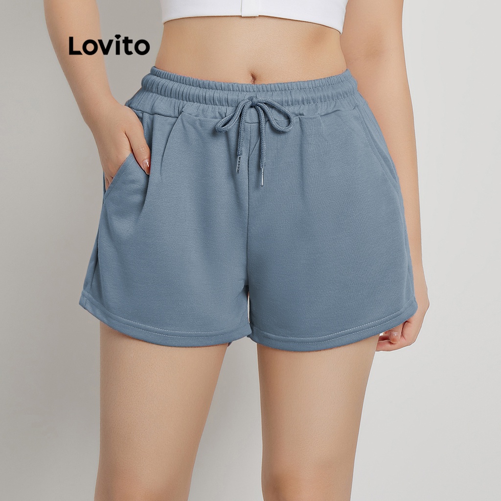 Lovito Casual Solid Drawstring Shorts for Woman L00242 (White/Black/Grey/Pink/Blue)