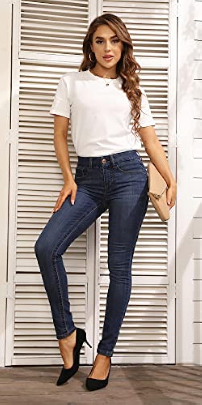 OFLUCK Women Stretch Ripped High Waisted Jeans Frayed Raw Hem Distressed Denim Pants with Hole