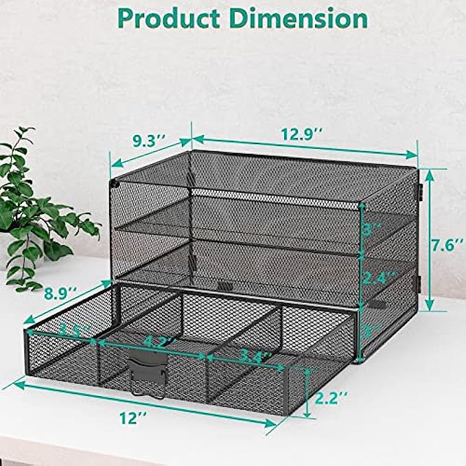 Usage: Dimensions of the multifunctional desk organizer is 12.9 x 9.3 x 7.5 inches. This storage organizer is designed to clear the messy desktop, store the office supplies for a safe and tidy working environment.