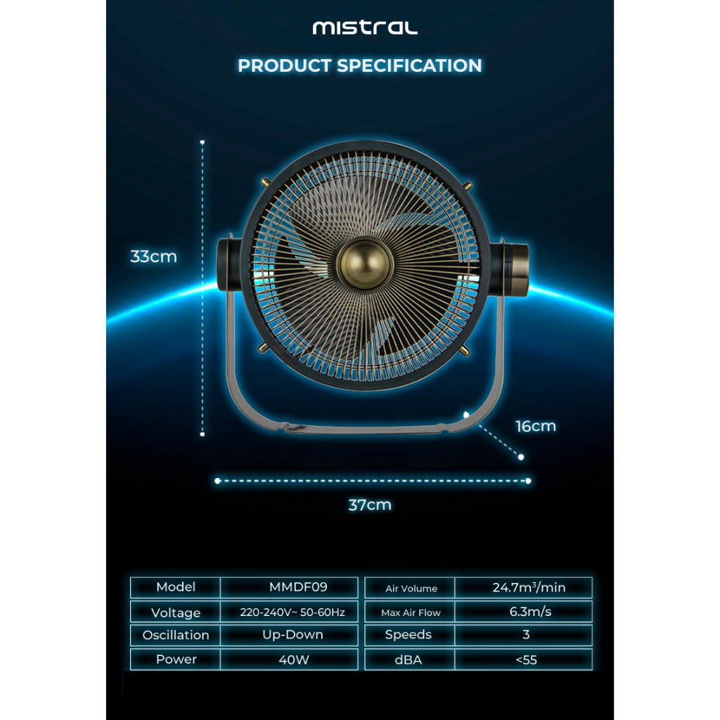 Retrograde by Mistral 9” Metal Desk Fan MMDF09