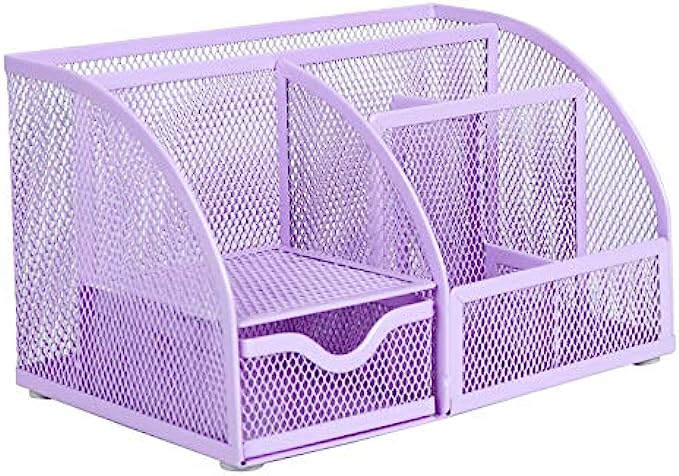 Annova metal desk organizer with seven compartments, including one pull out drawer;