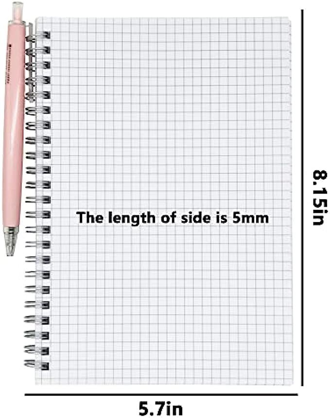 • 【4 Pack Square Grid Notebooks】5.7x8.1 inch (A5 size), 80 sheets (160 pages) per pack. Total 640 writing pages!