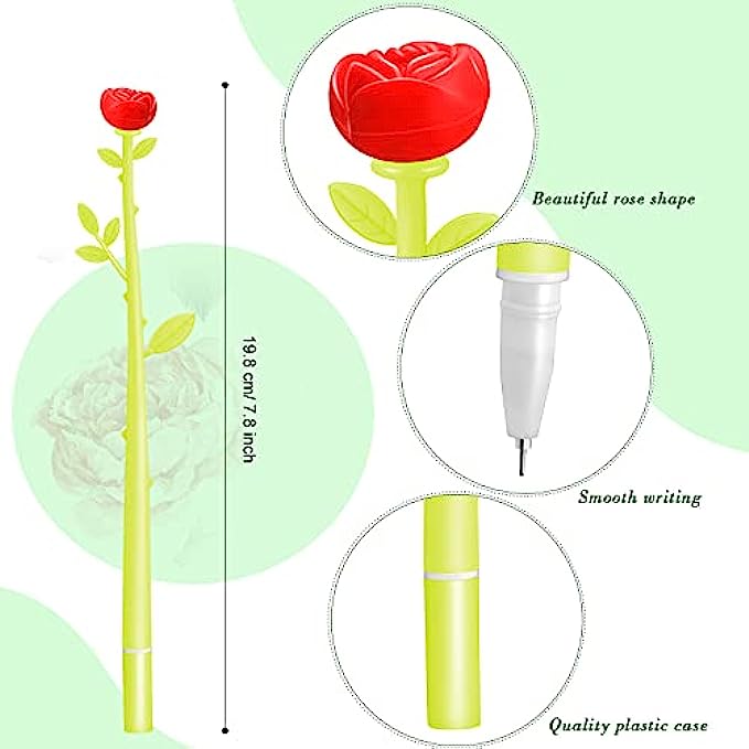 Excellent material: these rose shaped ballpoint pens are made of quality plastic case and durable refill, which are soft and durable, not easy to deform or damage, and comfortable to hold; In addition, the ink cartridge can be easily replaced, which is practical and convenient