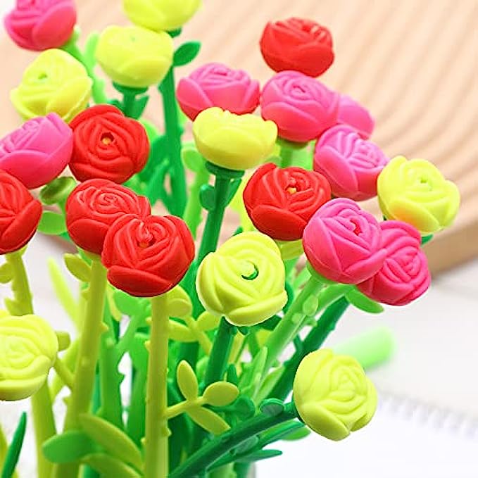 Creative design: these rose shaped black ink ballpoint pens look like blooming roses, which can be applied not only as pens for daily writing, but also as ornamental flowers in the pen holder or flowerpot; In addition, they can stimulate your interest and enrich your thinking and creativity with their beautiful appearance