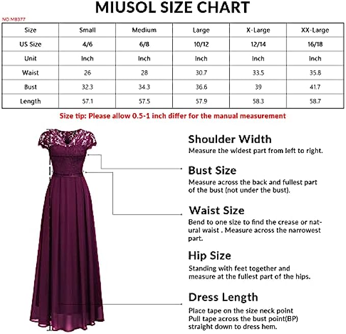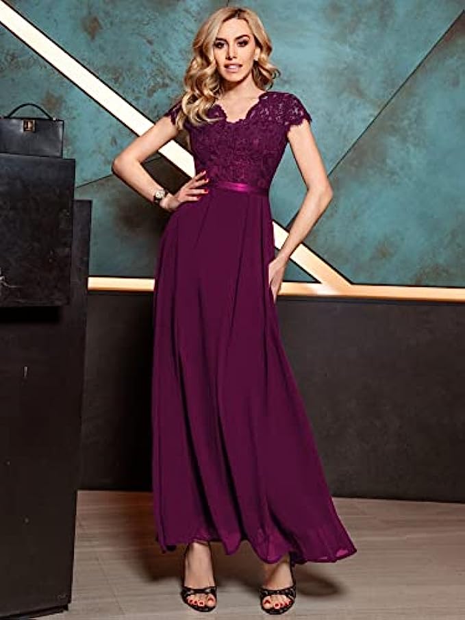 Miusol Women's Formal V Neck Elegant Floral Lace Bridesmaid Maxi Dress