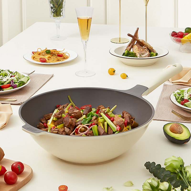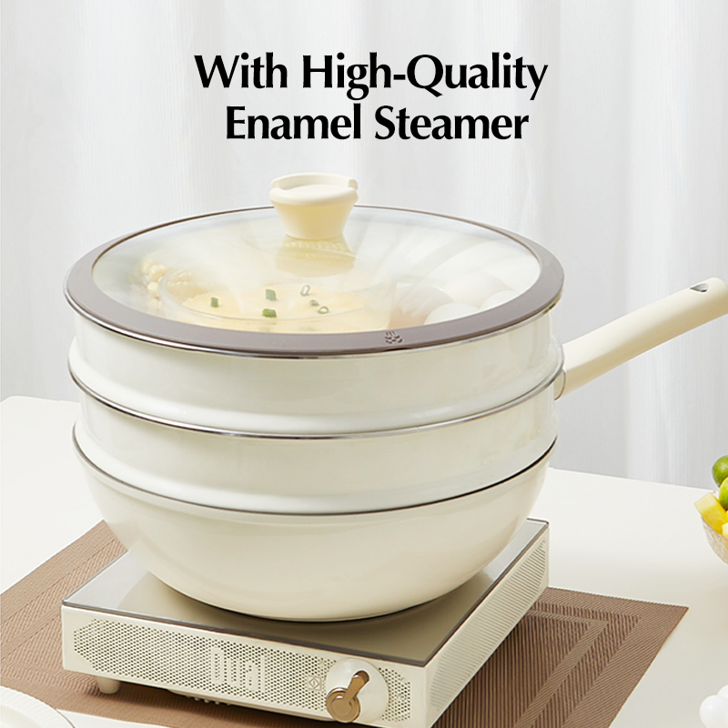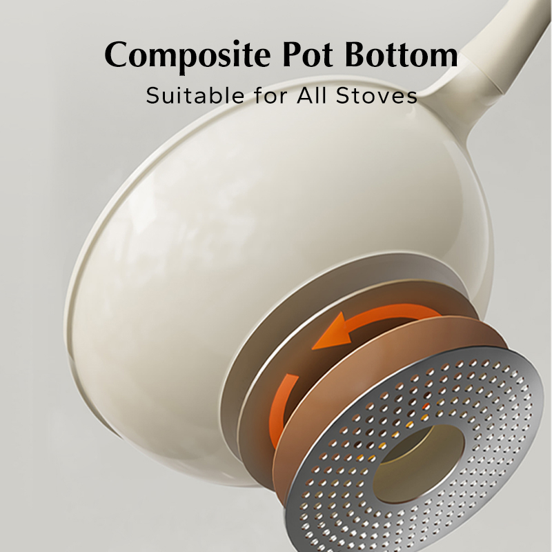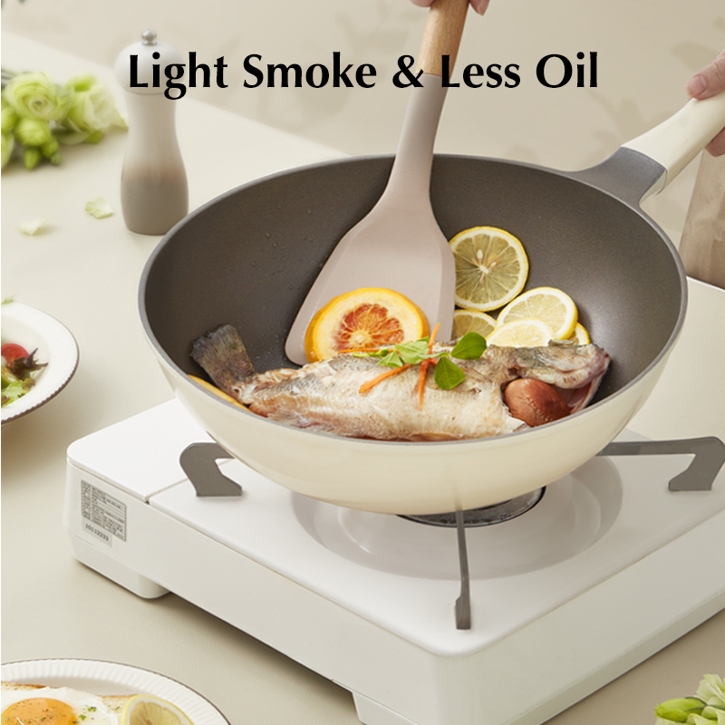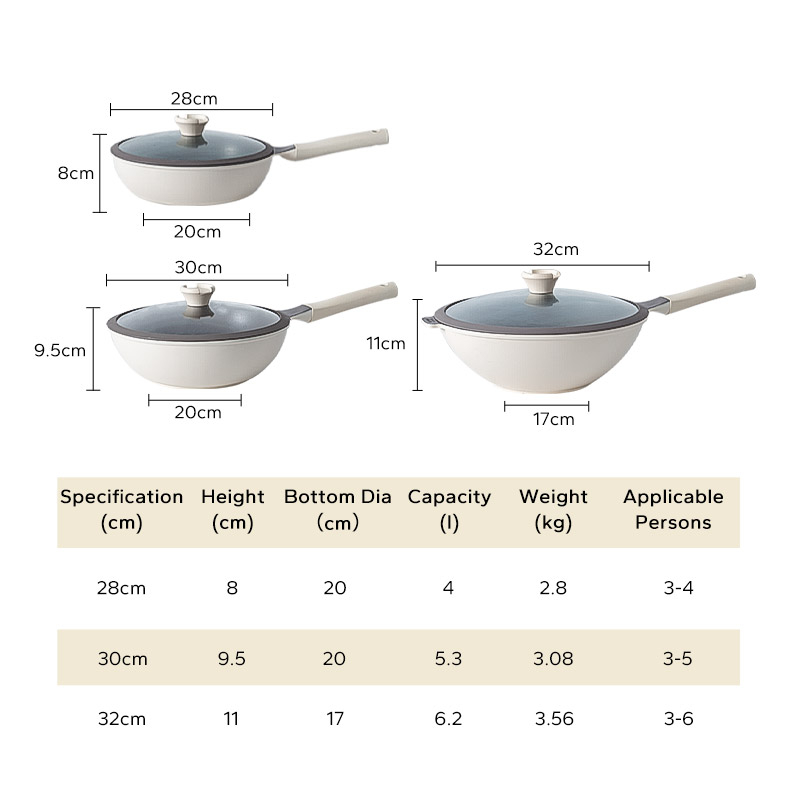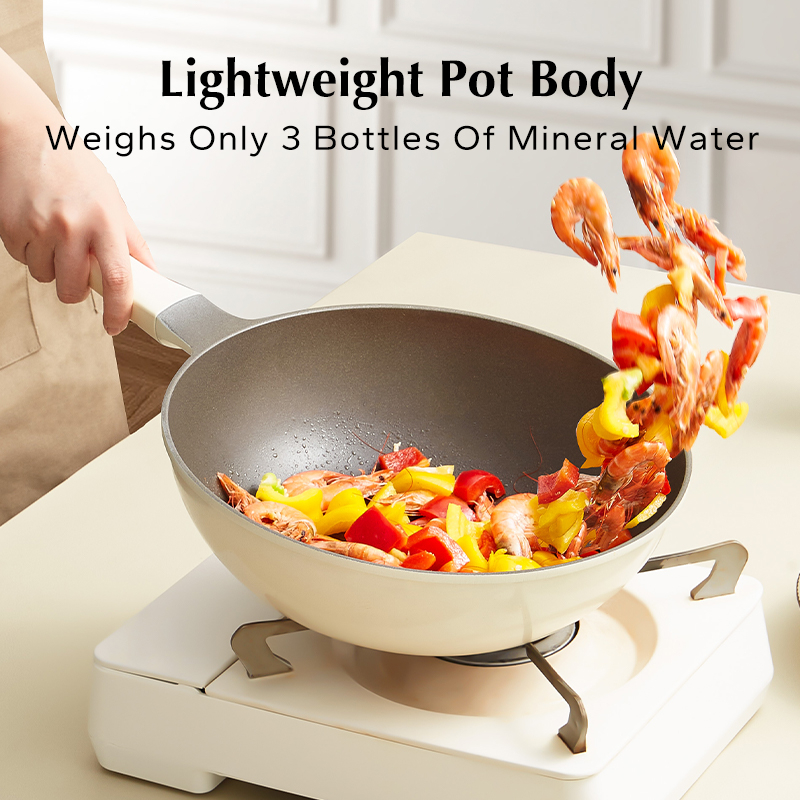 [New Arrival] Honcook Redchef Ceramic Rock Wok With Lid 32/30/28cm Non Toxic, PTFE & PFOA Free- Oven Safe Suitable for All Stove Incl. Induction