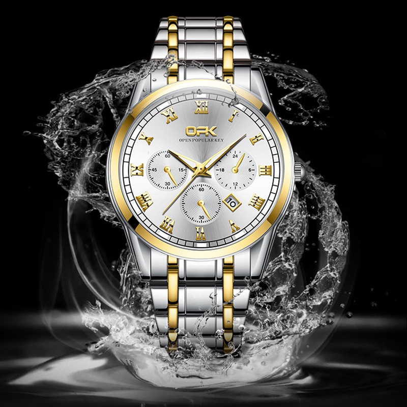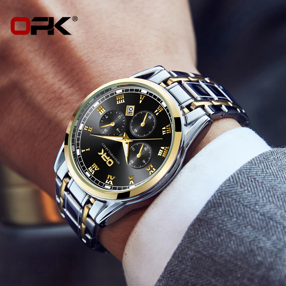 OPK Men Watch Waterproof Seiko Stainless Steel Black Luxury Watchs